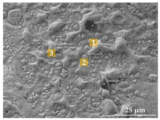 Elemental composition distribution of the corresponding spots marked in Figure 6 (wt %).