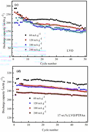 - Cao, X.; Zhu, L.; Wu, H. Preparation and electrochemical performances of rod-like LiV3O8/carbon composites using polyaniline as carbon source. Electron. Mater. Lett. 2015, 11, 650–657. [Google Scholar]