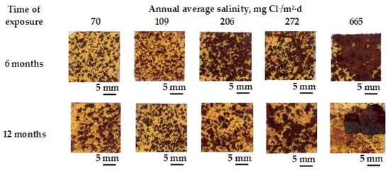 - Oh, S.J.; Cook, D.C.; Townsend, H.E. Atmospheric corrosion of different steels in marine, rural and industrial environments. Corros. Sci. 1999, 41, 1687–1702. [Google Scholar] [CrossRef]