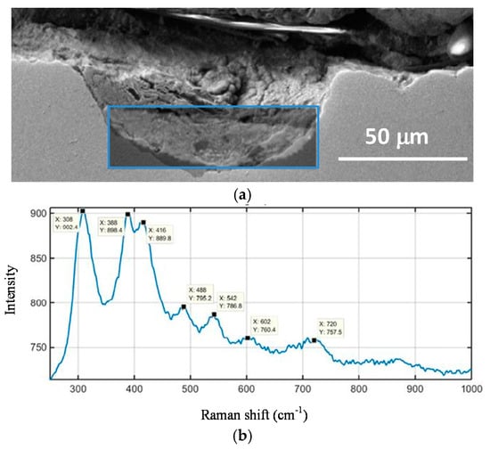 Rust composition studies using µRS usually demand a high laser power for the excitation of spectra because some of the most common iron oxides and oxyhydroxides are poor light scatterers. Sample degradation frequently occurs under intense sample illumination and may lead to the misinterpretation of spectra. Low laser power minimises the risks of spectral changes due to sample degradation [43]. Moreover, in some cases, particularly when the phases are less crystallised, it is difficult to discriminate one phase from another only by µRS because the Raman shift is very close.