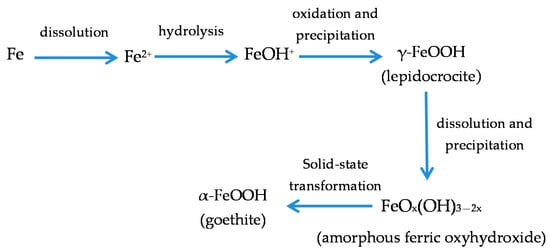- Ishikawa, T.; Katoh, R.; Yasukawa, A.; Kandori, K.; Nakayama, T.; Yuse, F. Influences of metal ions on the formation of β-FeOOH particles. Corros. Sci. 2001, 43, 1727–1738. [Google Scholar] [CrossRef]