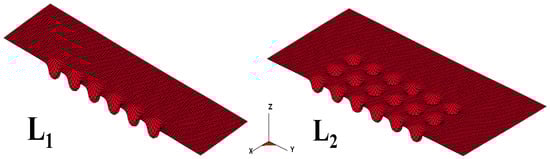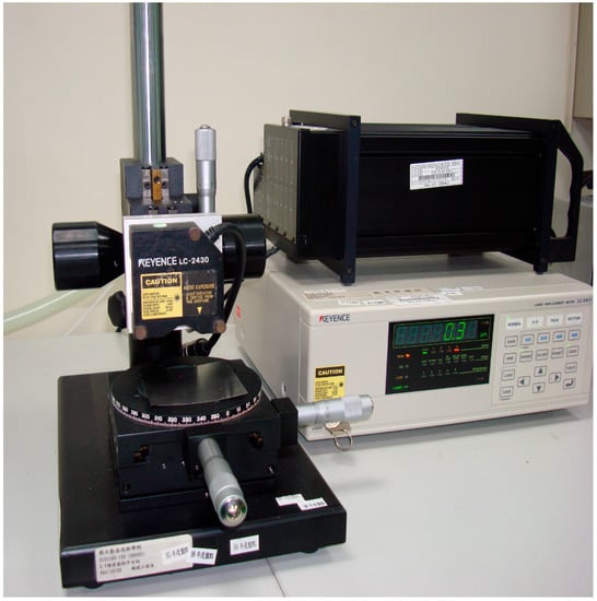 Two models, i.e., macro and micro, are employed in the simulation of the micro-channel array deep drawing process for stainless steel plate. Since the thickness of the stainless steel plate for experiments is merely 50 μm, the contour measurements of the finished workpieces is accomplished by using a laser displacement system, as shown in Figure 9 (Keyence LC-2430, Osaka, Japan). Some of the processed workpieces are shown in Figure 10.