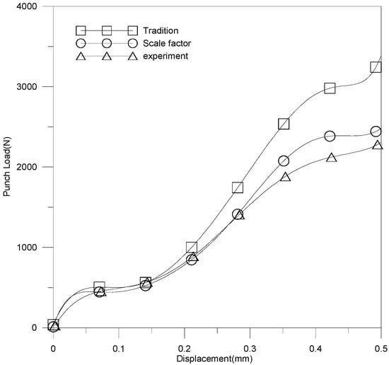 The relationship of punch load and stroke is revealed in Figure 15. The curve variations for these three results (experimental results, traditional material model and modified scale-factor material model) are similar; namely, the punch load increased with increasing stroke. However, significant errors are observed once the stroke exceeds a threshold. The large error is due to the increase in contact area between die and blank. According to Figure 15, the simulation results for the modified scale-factor material model is much better than those of traditional material model.
