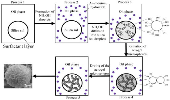 Proposed mechanism of the formation of silica aerogel microspheres.
