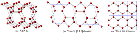 (a) Unit cell crystal structures of P2/m-Si; (b) The structural view along the [010] direction; (c) The structural view along the [100] direction.