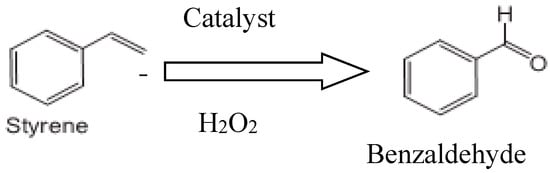 The reaction progress was investigated under the influence of a catalyst; NiO, 0.3 g; styrene, 5 mmol; acetonitrile, 5 mmol; H2O2, 5 mmol; a temperature of 60 °C, and a time of 6 hr. Owing to the high Lewis basic nature of the nickel oxide, the catalyst contains an equal distribution of Lewis basic sites and the Brønsted acidic sites. The oxidant, H2O2, has the capability to adsorb on the surface of the catalyst by the Brønsted acidic nature of the catalyst, and the oxygen from the oxidant release to the substrate, due to its Lewis acidic nature. Thus, this catalytic reaction involves conversion of styrene to benzaldehyde [30].