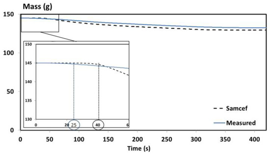 Comparison between the predicted and measured remaining mass.