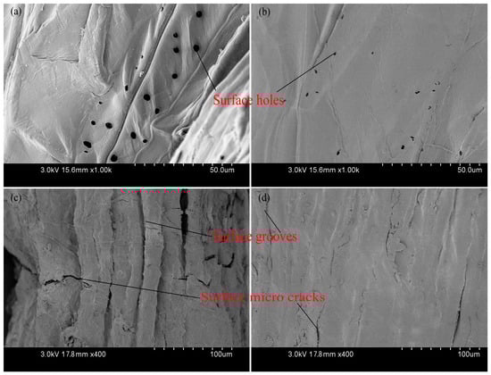 In Figure 17, representative surface topography of luffa sponge fiber bundles is presented. It was observed that fiber bundles from LD luffa sponge had more abundant grooves, holes, and micro cracks on the surface as compared to HD luffa sponge.