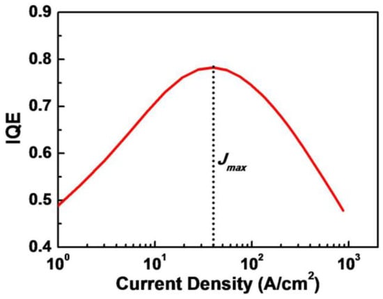 The calculated relationship between IQE and injection current density of GaN-based LDs before lasing.