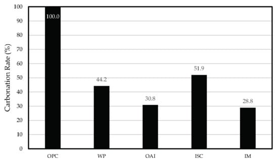 Figure 5. Comparison of the carbonation rates for the different specimens with ordinary Portland cement (OPC).