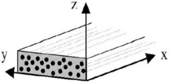 Thus, λvx and λvy are equal for the ISO composite. Then, in the case of the UD composite, each layer tensor is equal (only one orientation, 0°). Therefore, the effective thermal conductivity tensor is expressed by Equation (12) taking into account the assumption of homogeneous interlayers.