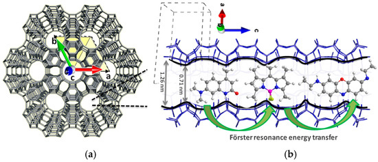 - Insuwan, W.; Rangsriwatananon, K.; Meeprasert, J.; Namuangruk, S.; Surakhot, Y.; Kungwan, N.; Jungsuttiwong, S. Combined experimental and theoretical investigation on fluorescence resonance energu transfer of dye loaded on LTL zeolite. Microporous Mesoporous Mater. 2017, 241, 372–382. [Google Scholar] [CrossRef]
