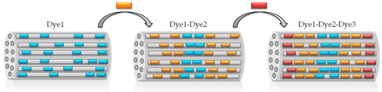 Sketch of the sequential insertion of the fluorophores into the LTL zeolite channels.