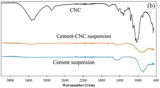 - The FTIR results indicated the possibility of bond formation between CNC and the hydration product. The results from XRD and FTIR did not indicate the formation of any new phases in the hydration product of the mixture with addition of CNC;