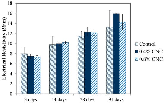- A slight improvement in the electrical resistivity of the mixtures with CNC compared to the control mixture was observed;