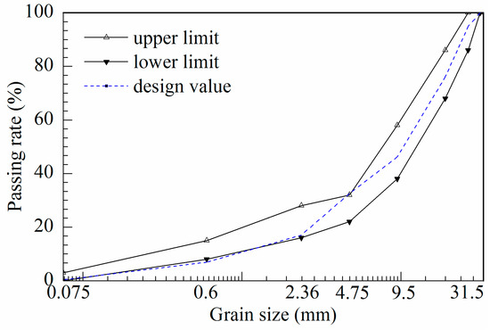 Ordinary Portland cement P.O42.5 was chosen in this research, and its properties are shown in Table 1. The technical specifications of the aggregates used in the semi-rigid base material are shown in Table 2, and the grading curve is shown in Figure 1. The cationic slow-cracking EA was used in the experiment. Table 3 lists the basic properties of the selected EA.