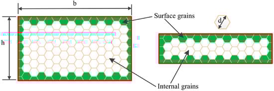 where the , , and are the thickness, width, and length, respectively. Figure 15 shows the surface and internal grains in the pure copper samples. Considering , the Equation (13) could be simplified