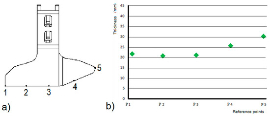 Reference points (a) and mean thickness of the worn material (b).