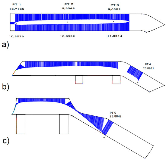 The measurements were repeated by using a contact stylus profilometer Linear Height LH-600E/EG—Series 518 (Mitutoyo Corp., Kawasaki, Japan). The results are shown in Figure 3, where the thickness of the worn profile is expressed in millimetres on the bottom and on the top of the worn section. In the pictures, both the section of the CAD reference model and the section of the worn model reconstructed by the 2D profilometer are represented. As one can observe, the total amount of material loss agrees with the manual measurements, but in this case the 2D wear distribution over the blade’s profile can be displayed.