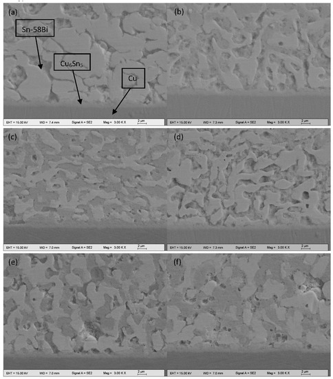 - Myung, W.R.; Kim, Y.; Jung, S.B. Mechanical property of the epoxy-contained Sn-58Bi solder with OSP surface finish. J. Alloys Compd. 2014, 615, S411–S417. [Google Scholar] [CrossRef]