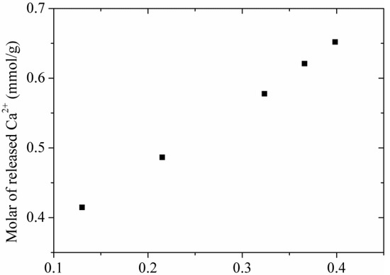 The amounts of Ca2+ released from tobermorite at different adsorption amounts of Cr(VI).