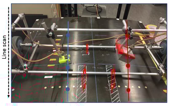 Due to the requirement of rapid inspection, a line scanning approach of UGW testing was taken. Accordingly, the test panels were scanned along a stringer direction, as shown in Figure 4.