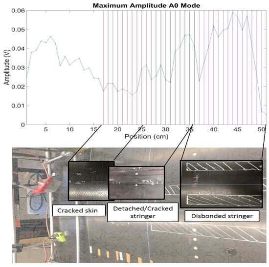Representative results from non-contact (air-coupled) UGW scans of Panel 3: (a) skin modes only; (b) skin modes plus stringer modes.