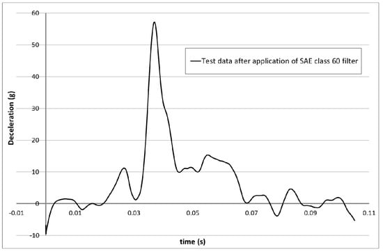 Although the best individual result was achieved using TSize = 1 × 10−8 s and Soft = 1.0 (Figure 15) the best average peak deceleration result was found using the same parameter settings but with TSize = 1 × 10−9 s and Soft = 0.0 (Table 10, Set 12).