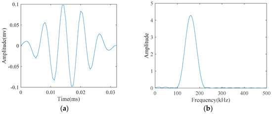 The desired five-cycle tone-burst emitted at 160 kHz as the center frequency in: (a) its temporal waveform; and (b) its spectrum.