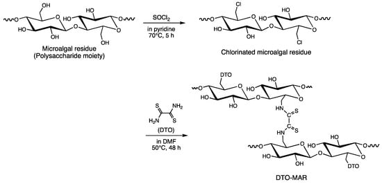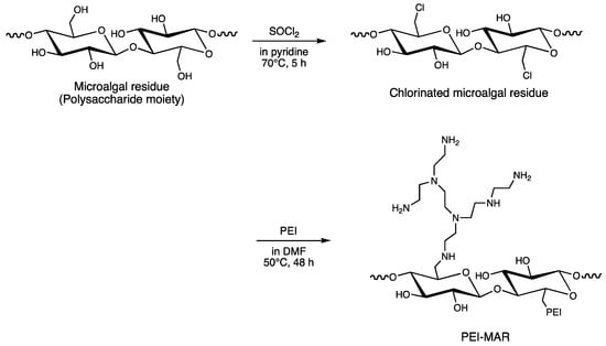 The dried sample of residual waste of Pseudochoricystis ellipsoidea generated in a biofuel conversion process was kindly provided by DENSO CORPORATION, Aichi, Japan. PEI-MAR and DTO-MAR were synthesized according to the synthetic routes shown in Scheme 1 and Scheme 2, respectively. The details of the synthesis as well as their characterizations are described elsewhere [5,6].
