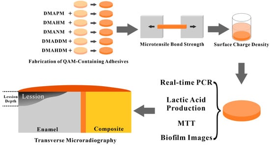 - Cheng, L.; Weir, M.D.; Zhang, K.; Arola, D.D.; Zhou, X.; Xu, H.H. Dental primer and adhesive containing a new antibacterial quaternary ammonium monomer dimethylaminododecyl methacrylate. J. Dent. 2013, 41, 345–355. [Google Scholar] [CrossRef] [PubMed]