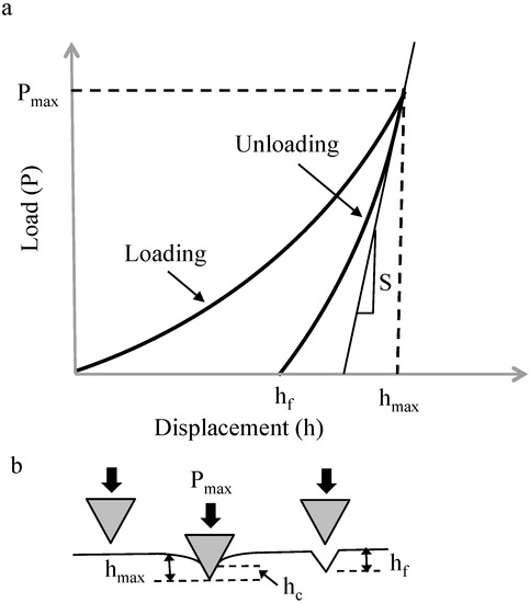 - Fischer-Cripps, A.C. Critical review of analysis and interpretation of nanoindentation test data. Surf. Coat. Technol. 2006, 200, 4153–4165. [Google Scholar] [CrossRef]