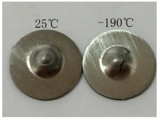 Macrophotograph of the fracture sample at 25 °C and −190 °C.