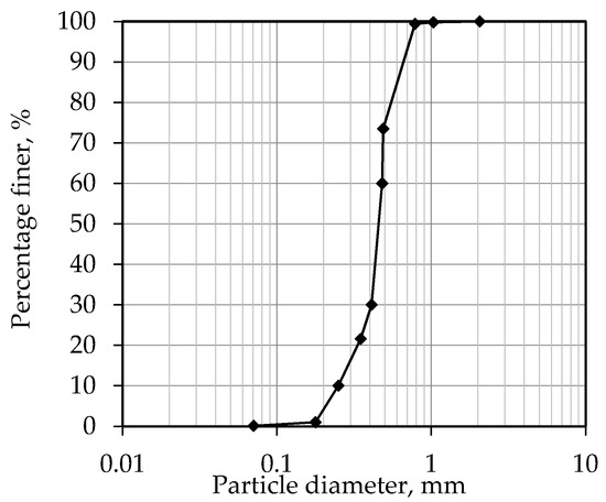 Particle size distribution of Fujian Standard sand.