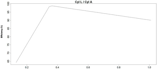 Figure 4 shows that, contrary to the results reported by Yang and Wang [8], the separation efficiency is determined by the medium inlet diameter and shape and that the separation density is determined by SP, and efficiency increases as the cylinder length to area increases. Similarly, as the diameter of the float port with respect to the area increases so does the efficiency. In Figure 5 it can be seen how the increases of about 0.09 to 0.35 correspond to an increase in the cylinder length of one of the devices reaching an optimum condition, while the relation of the length to area about 0.35 below this level efficiency tends to decrease.