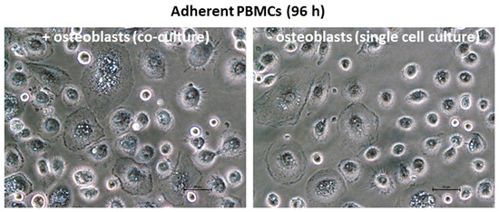 Light microscopy images of adherent PBMCs (scale bar: 20 µm).