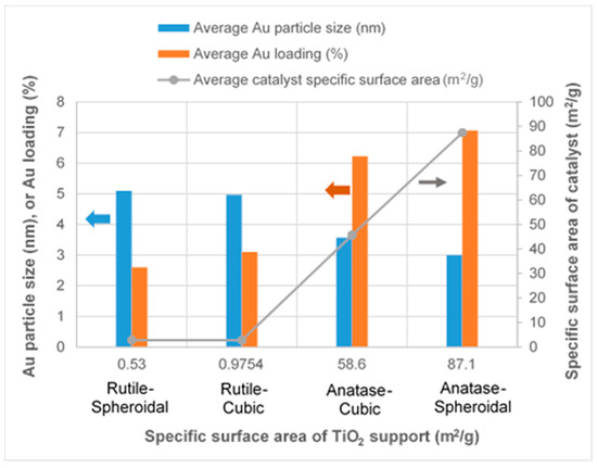 Effects of different TiO2 supports on Au particle size, Au loading and catalyst specific surface area.