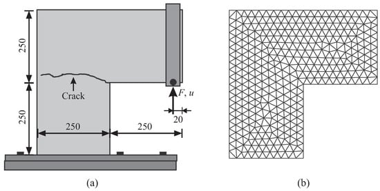 - Yang, Z.; Chen, J. Fully automatic modelling of cohesive discrete crack propagation in concrete beams using local arc-length methods. Int. J. Solids Struct. 2004, 41, 801–826. [Google Scholar] [CrossRef]