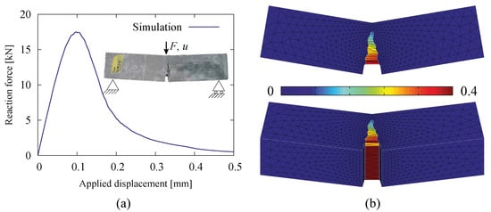 Figure 6 demonstrates the model performance while analyzing the behavior of a notched FRC beam subjected to three-point bending. It is observed that the proposed multilevel model captures the fracturing processes in FRC and the load-bearing responses of the structure both qualitatively and quantitatively very well (see Zhan and Meschke [] for more details).