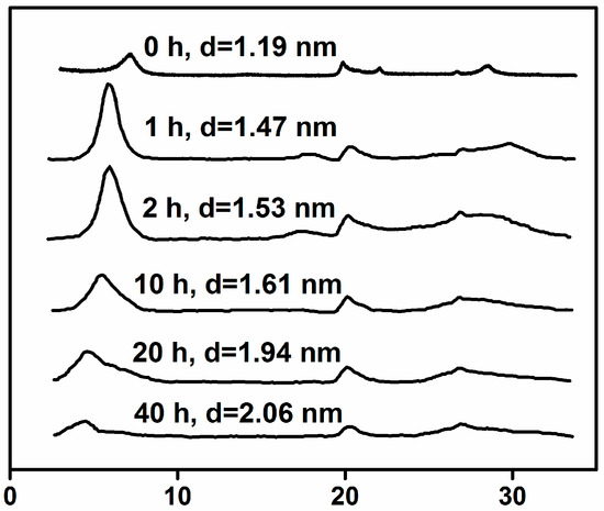 X-ray diffraction (XRD) curves of D-clay obtained at different polymerization times.