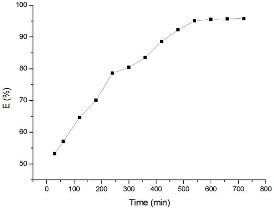 The sorption experiments were carried out in stopper conical flasks placed in a bath shaker at room temperature. To optimize the adsorption process, the specific parameters such as pH, equilibration time, and initial concentration of Cr(VI) ion influencing the adsorption process have been investigated by changing one parameter and keeping other parameters constant. In each experiment, 0.2 g of goethite was added to a solution containing NaNO3 0.05 M, Cr(VI) ion with a definite concentration, and at a specific pH. The mixture had a volume of 100 mL and was shaken for the desired time at the rate of 150 rpm. Then, the solid was separated by the centrifuging and filtering. The concentration of Cr(VI) in the filtrate was analyzed using atomic absorption spectroscopy (Thermo M Series, Waltham, MA, USA). The experiments were carried out in duplicate and mean values were presented. The error obtained was 1–2.0%. The data were reported in terms of removal efficiency (E) and the amount of adsorbate/weight of adsorbent at equilibrium (qe).