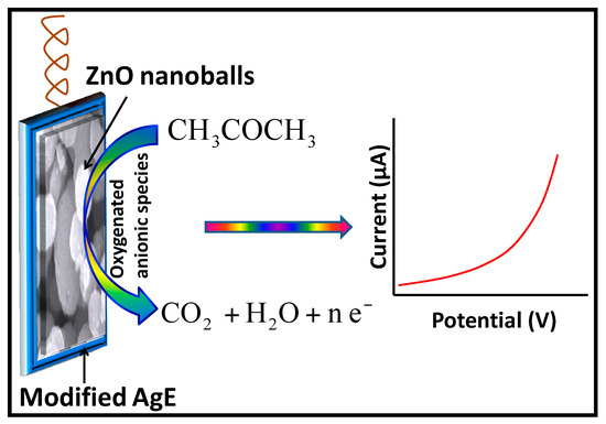 On the basis of above discussion, the proposed sensing mechanism for ZnO nanoballs modified AgE against acetone is represented in Figure 7.
