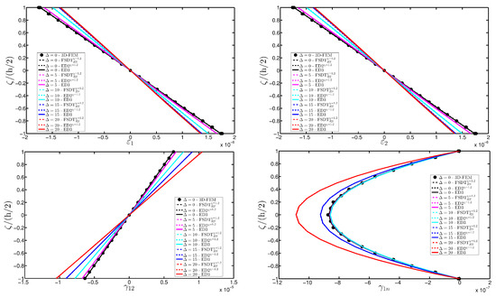 for , , and , where denotes the number of discrete points along the thickness for each ply of the laminate. The Cheb-Gau-Lob distribution with is used to obtain a discrete distribution of points along the thickness of each layer