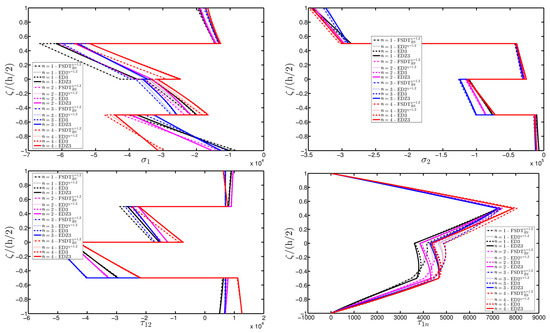 for . As mentioned above, the definitions and the meaning of higher-order stress resultants are illustrated in the book by Tornabene et al. [1].