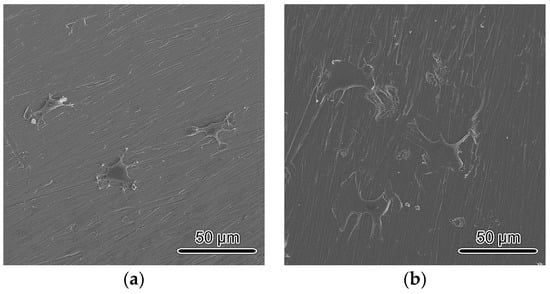 Rat bone marrow cells (RBMcs) collected from the femur of a 4-week-old Sprague Dawley (SD) rat were cultured in α-medium supplemented with 15% fetal bovine serum, 50 mg/L ascorbic acid, 10 mmol/L Na-β-glycerophosphate, 10−8 mol/L dexamethasone, 1% penicillin, 1% streptomycin, and 0.292 mg/mL l-glutamine in a humidified atmosphere containing 5% CO2 at 37 °C. The medium was replaced every two days and, after seven days, they were detached and seeded onto specimens.