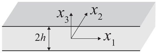 where is the second-order time derivative of the displacement vector; is the material density; and is the stress tensor, with and as the Lamé constants, as the identity tensor, and as the strain tensor. In plates (Figure 1), bulk waves reflect between the free-stress boundaries, such that plane wavefront () solutions travelling along the plane exist [25]: