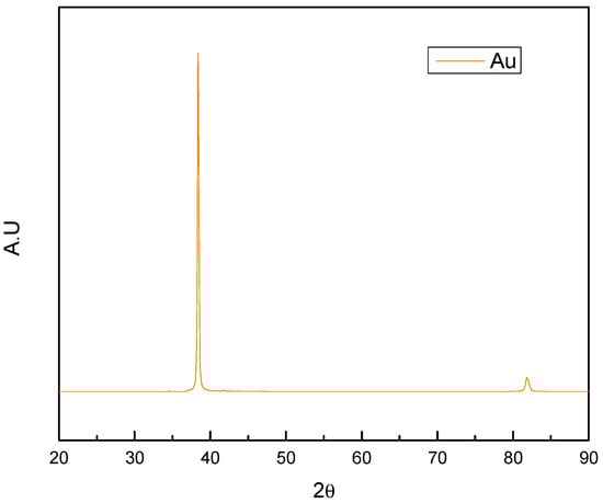 In the samples with gold coatings, Figure 3 identified reflections at 38.068° and 82.05° with planes in (111) and (222) in a cubic crystalline system. Likewise, this sample showed a high crystallinity because the count obtained for this sample was much higher in comparison to the other samples. Moreover, gold phases were identified in the samples of TaC/Au and HfC/Au at an angle of 38.068°, which is more evident for the sample of TaC/Au.
