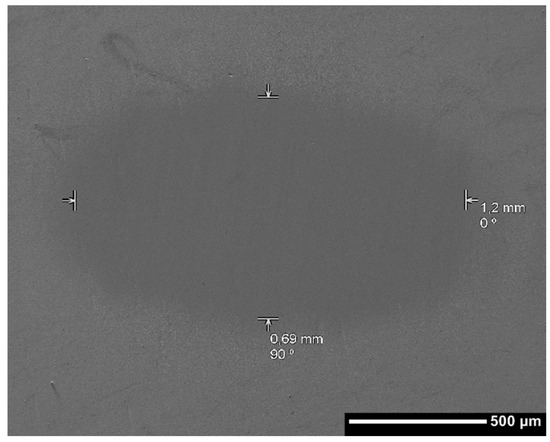 Through the scanning electron microscope technique the length of the scar generated by the wear process was measured. The measurement was carried out parallel and perpendicular to the direction of rotation of the sphere, as shown in Figure 4. These lengths were averaged to obtain an estimated diameter of the scar for each sample, as shown in Table 2.