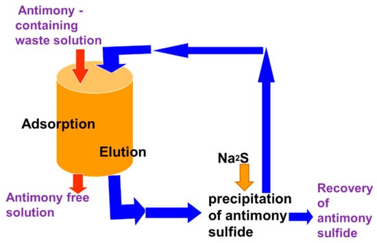 - Deorkar, N.V.; Tavlarides, L.L. A chemically bonded adsorbent for separation of antimony, copper and lead. Hydrometallurgy 1997, 46, 121–135. [Google Scholar] [CrossRef]