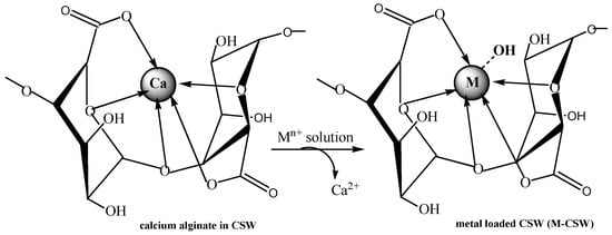 Inferred mechanism for the adsorption of m-valent metal cations by crosslinked pectic acid [9] (the mechanism for crosslinked alginic acid is the same). (With permission for reuse from Elsevier B.V.).